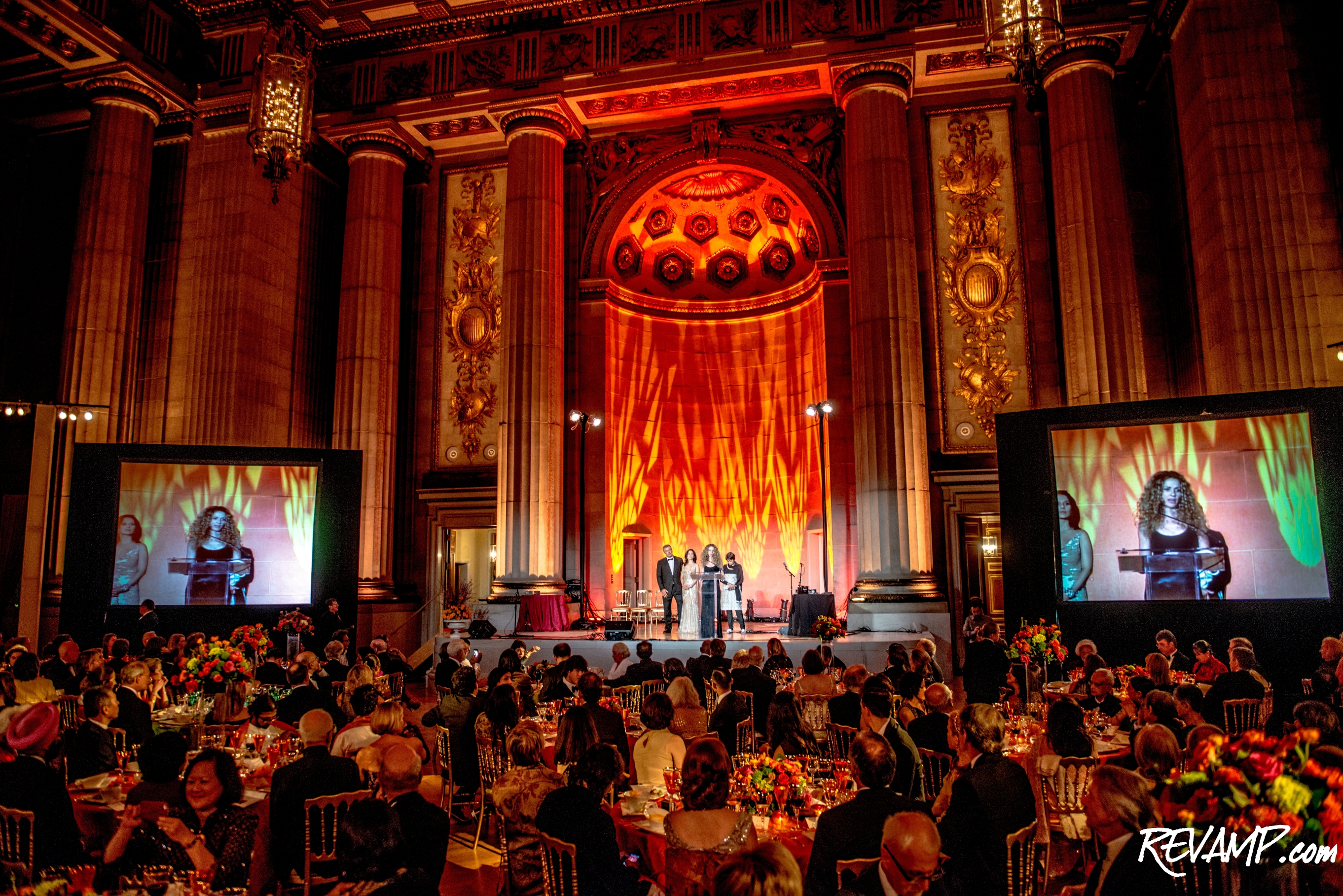 Still, the evening was no less regal and a parade of limousines, including several boasting diplomatic plates, quickly crowded the street outside the building as a stream of foreign dignitaries (Ambassadors, 'Dames', etc.), business and political leaders, philanthropists, and Hollywood celebrities made their way inside.